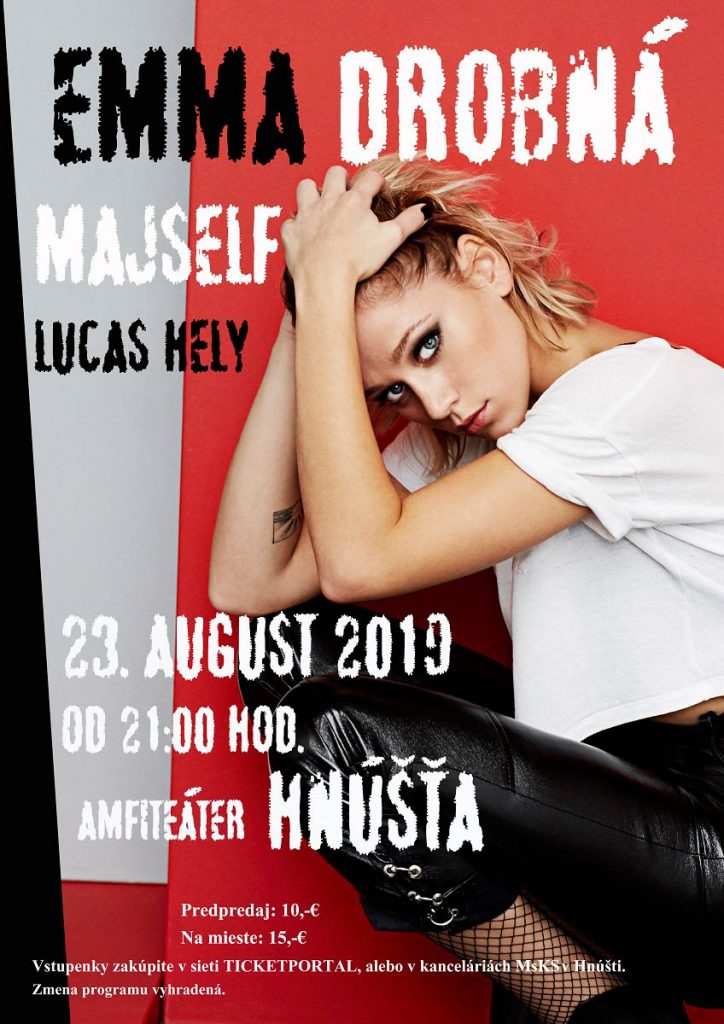 Symbolickou rozlúčkou s letom v Hnúšti bude koncert Emmy Drobnej a rapera Majselfa v piatok 23. augusta od 21:00 hod. v miestnom amfiteátri.