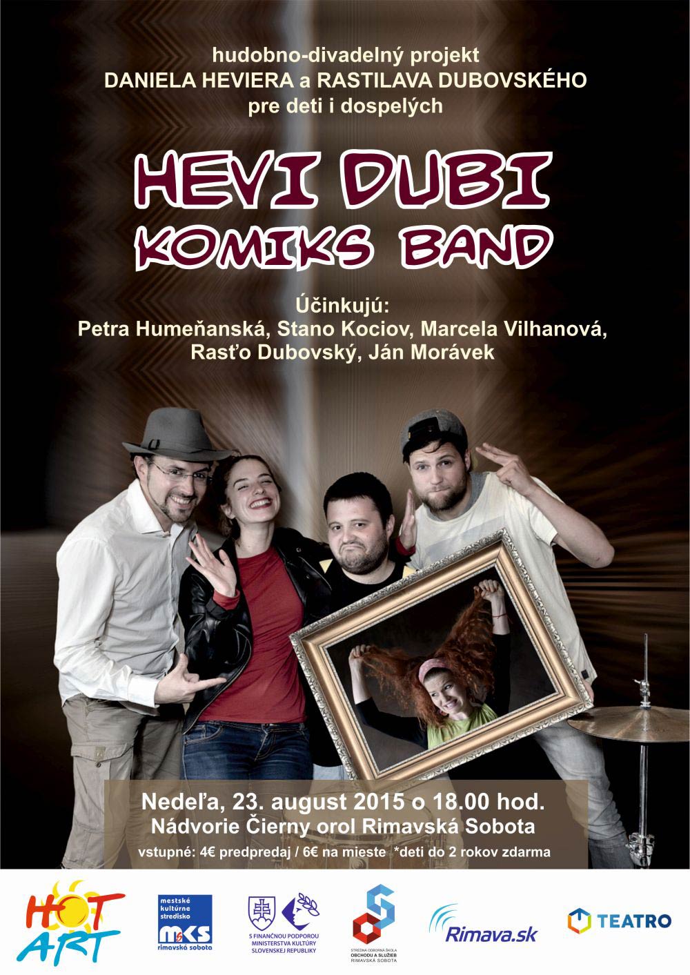 V rámci Hot Art-u zavíta v nedeľu, 23. augusta, do Čierneho orla v Rimavskej Sobote skupina Hevi Dubi Komiks Band, ktorá hrá a spieva texty skúseného autora pre deti i dospelých Daniela Heviera.