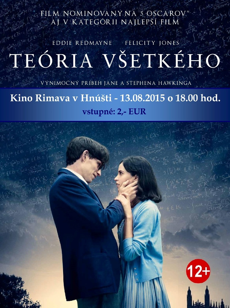 Svoje brány opäť otvorí aj kino Rimava v Hnúšti. Vo štvrtok, 13. augusta, uvedie tentokrát životopisnú romantickú drámu Teória všetkého o študentovi kozmológie, ktorý na svojom nemocnom tele nosí jednu z najmúdrejších hláv, akú kedy ľudstvo poznalo.