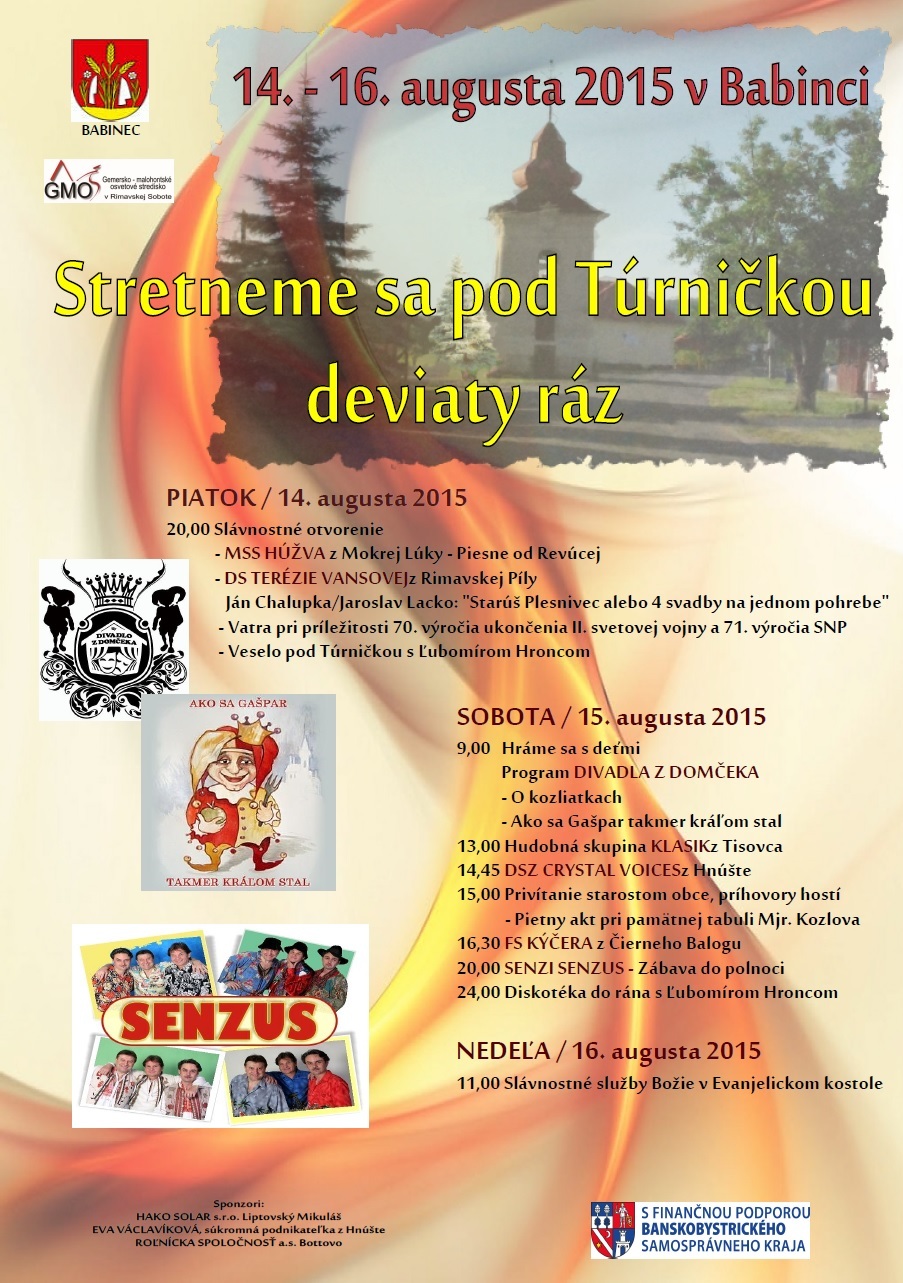 „V piatok oslávia Deň obce aj Hrnčiarske Zalužany kedy začína aj trojdňové stretnutie pod Túrničkou na Babinci. Piatkový program bude už tradične patriť divadlu, vatre a voľnej zábave, v sobotu príde na rad tradičná i moderná hudba, tanec a spev. Nebude núdza ani o posedenia pri občerstvení a dobrej nálade,“ uviedla manažérka.