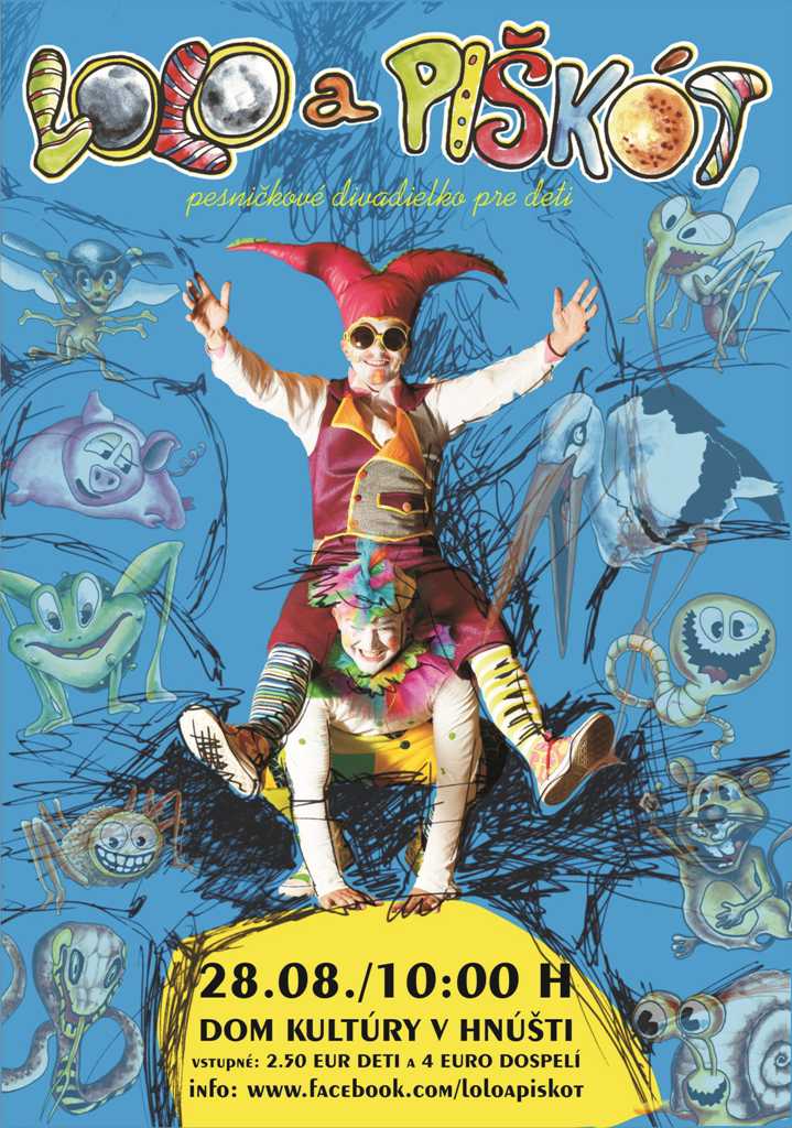 Posledný prázdninový piatok, 28. augusta, bude patriť najmä deťom. V pesničkovom divadle, ktoré sa odohrá v Hnúšti v kultúrnom dome, im škriatkovia Lolo a Piškót predstavia svojich kamarátov z ríše zvierat a naučia deti nebáť sa ich.