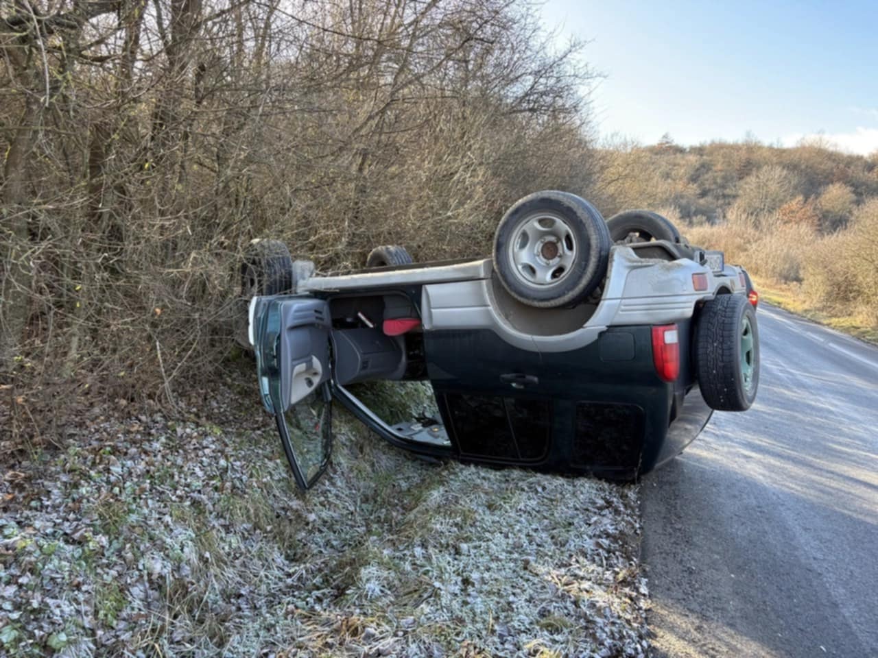 Auto prevrátené na streche. Jazdite opatrne!