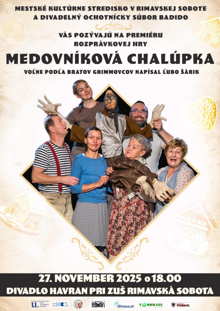 Bábkarský súbor dospelých BADIDO, ktorý už takmer štyri desaťročia obohacuje kultúrny život v Rimavskej Sobote, pripravuje premiéru rozprávkovej inscenácie Medovníková chalúpka. Predstavenie, ktoré sa uskutoční 27. novembra 2025 o 18:00 hodine v Divadle HAVRAN pri Základnej umeleckej škole, prinesie nový pohľad na klasický príbeh.