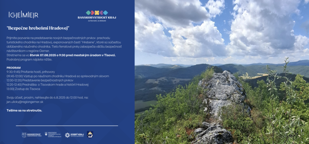 Podujatie je venované predstaveniu nových bezpečnostných prvkov, ktoré boli nainštalované na najnáročnejších úsekoch náučného turistického chodníka Hradová. Tento chodník, obľúbený medzi miestnymi aj návštevníkmi z celého Slovenska, vedie cez malebné hrebeňové pasáže a ponúka výhľady, ktoré vyrážajú dych. Práve na miestach, kde je terén strmší či exponovanejší, boli osadené ferratové istiace prvky – oceľové laná a kotviace body, ktoré výrazne zvyšujú bezpečnosť výstupu.