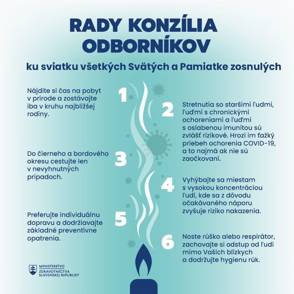 „Vyzývame ľudí na zodpovednosť. Aj konzílium odborníkov na tlačovej besede minulý týždeň sa vyjadrilo jasne. Ľudia by mali zvážiť cestovanie do čiernych okresov, zvážiť dĺžku pobytu, čas, kedy tam prídu, aby nedochádzalo k veľkým zhromažďovaniam na jednom mieste,“ menoval minister Lengvarský na dnešnej tlačovej konferencii k aktuálnym opatreniam. Ako ďalej povedal, ľudia by mali tiež používať respirátory a nemali by zabúdať ani na dezinfekciu rúk. „K nejakým zmenám nebude prichádzať,“ dodal na margo obmedzeniam pohybu počas Dušičiek.