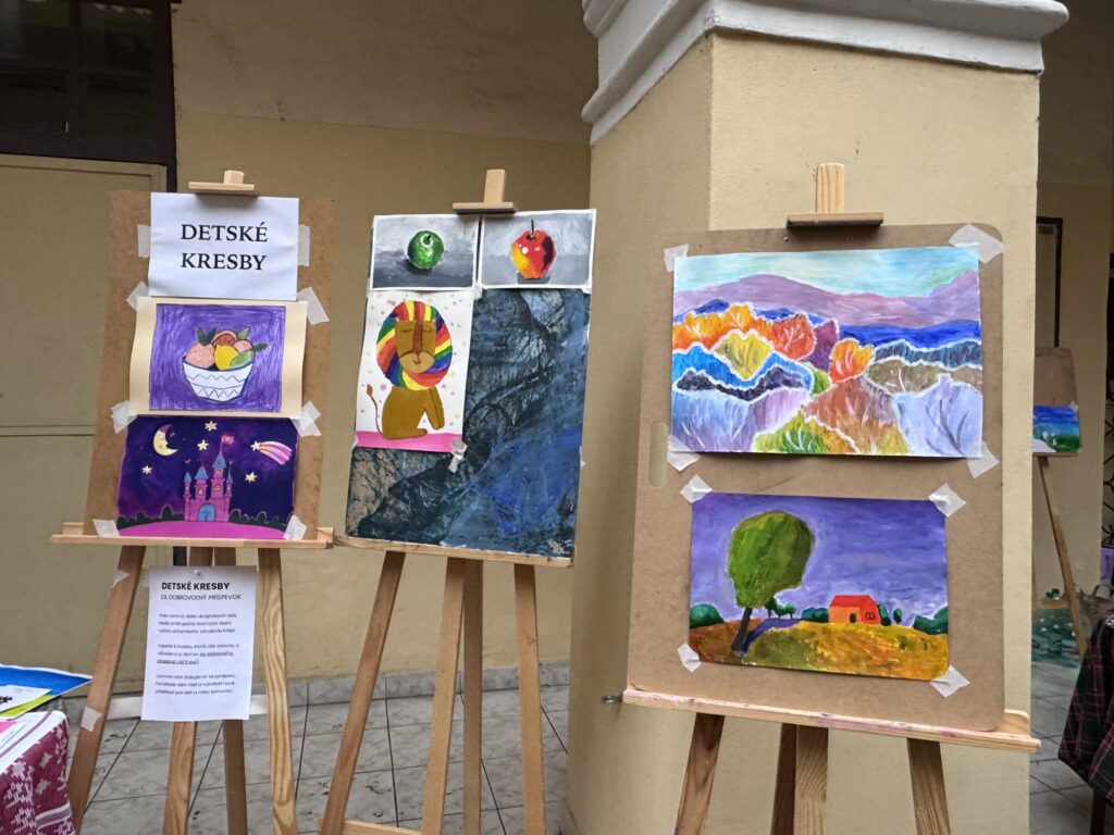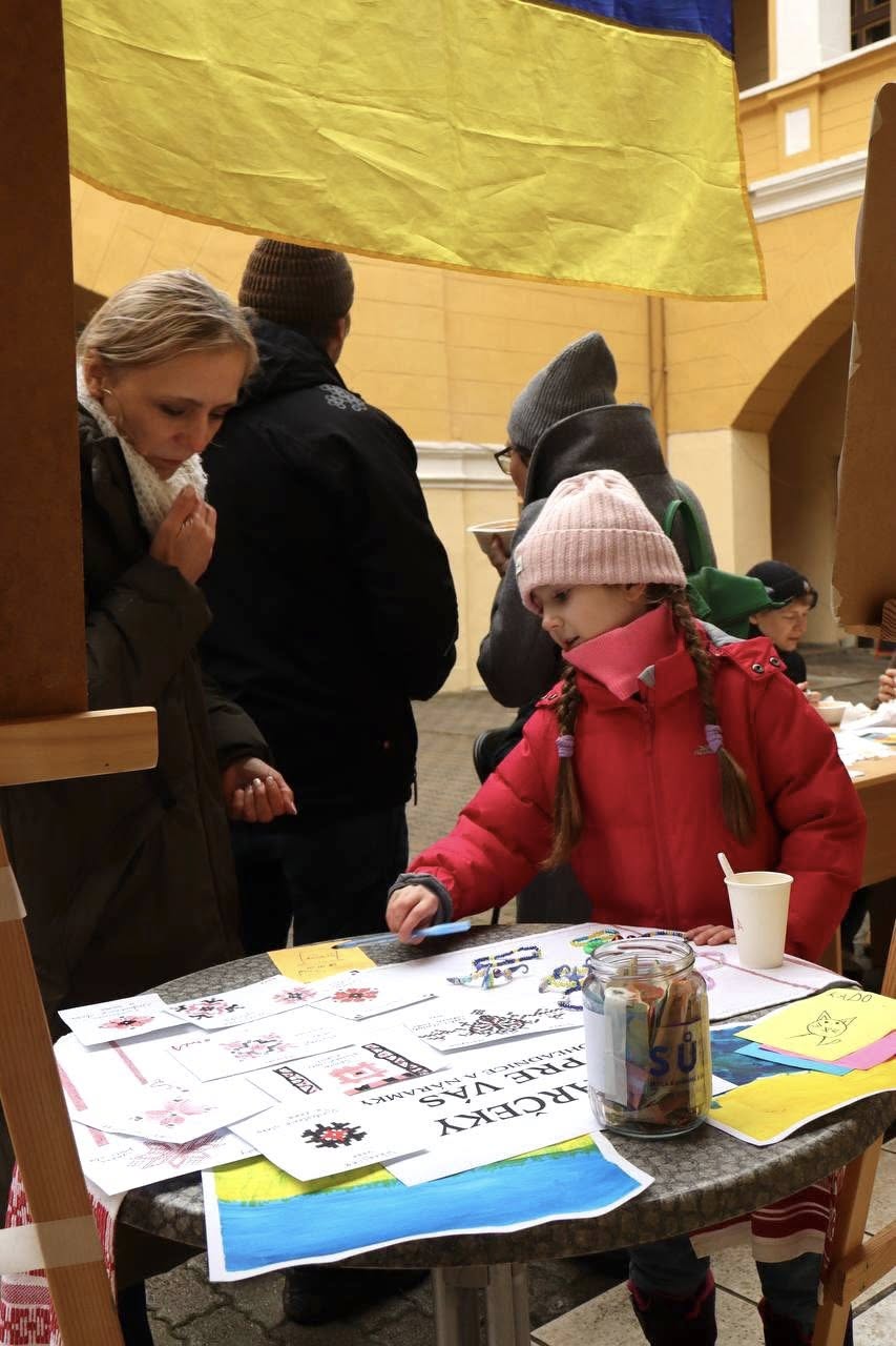 Celé stretnutie bolo dojemné. Ľudia ochutnávali boršč, tradičné ukrajinské jedlo, prezerali si detské kresby, ktoré si mohli vydražiť. Na papieri boli domy, slnko, mier. To, čo deťom chýba najviac.