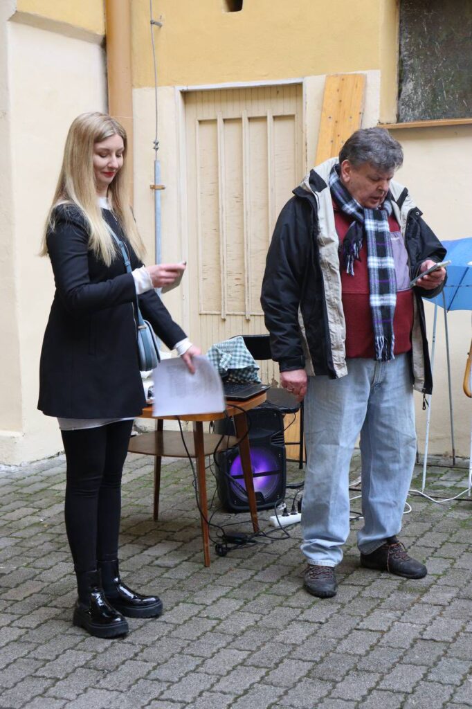 Vedľa neho stojí Alyona Yaseneva. „Stretnutie sa volá Boršč vďaky – a presne to chceme vyjadriť. Vďaku za prijatie, za podporu, za pomoc. Je to štvrté výročie totálnej vojny. Je ťažké byť ďaleko od domova, ale od prvého dňa tu cítime pokoj a mier. Srdce síce zostalo na Ukrajine, ale už začína patriť aj Slovensku.“