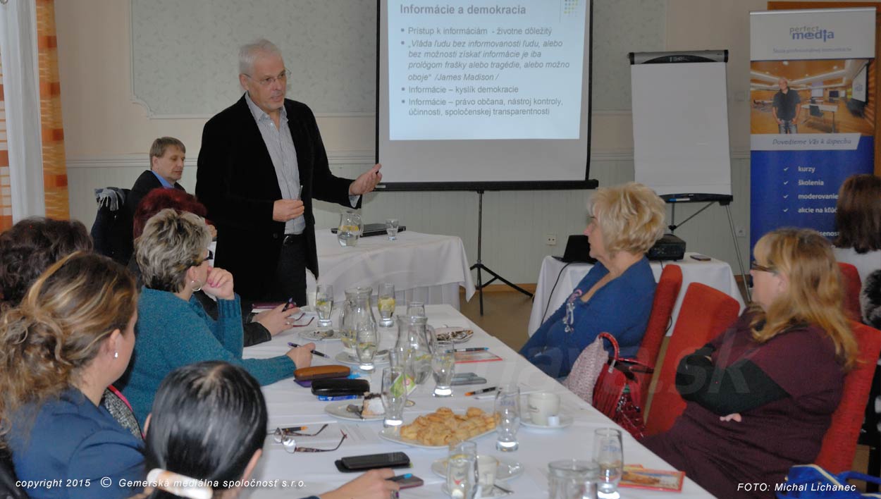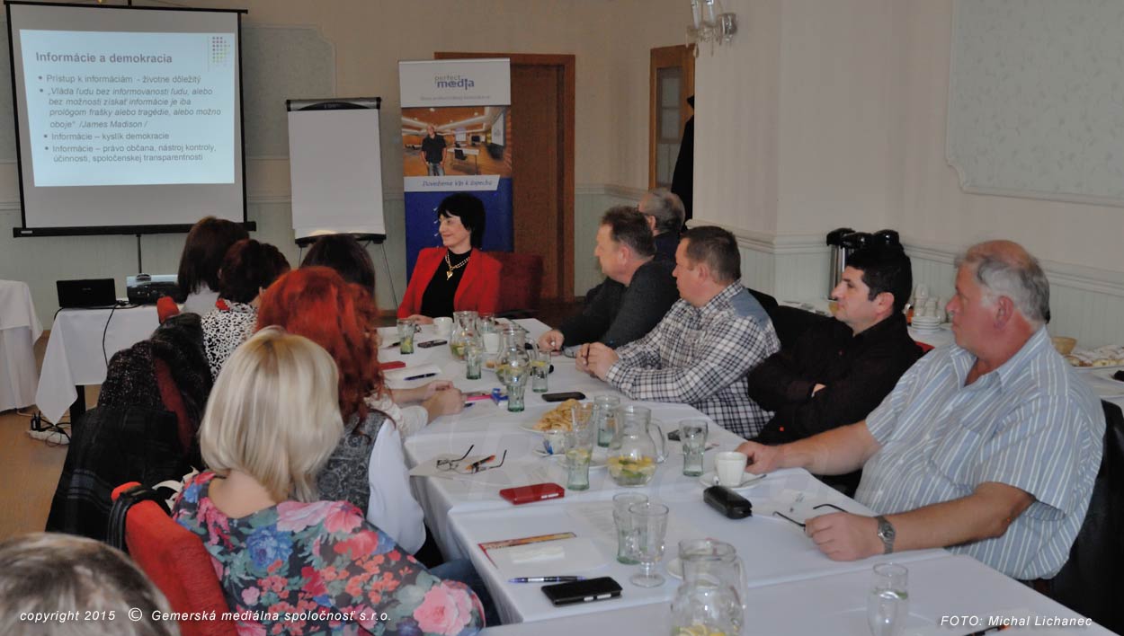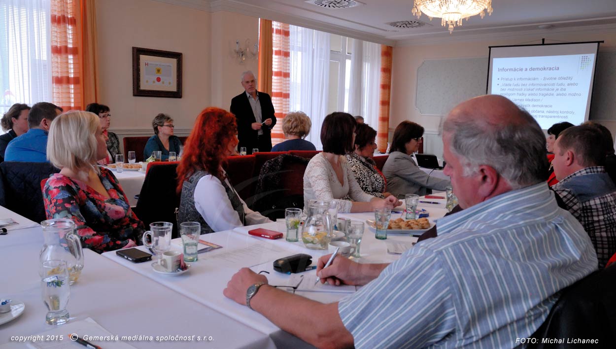 Nové vedomosti v Hoteli Zlatý býk načerpávalo v piatok, 20. novembra, približne dvadsať zástupcov samospráv. Na odbornom školení sa prítomní dozvedeli klady a zápory infozákona, jeho uplatnenie v praxi či chyby v komunikačnom procese samosprávy a médií.