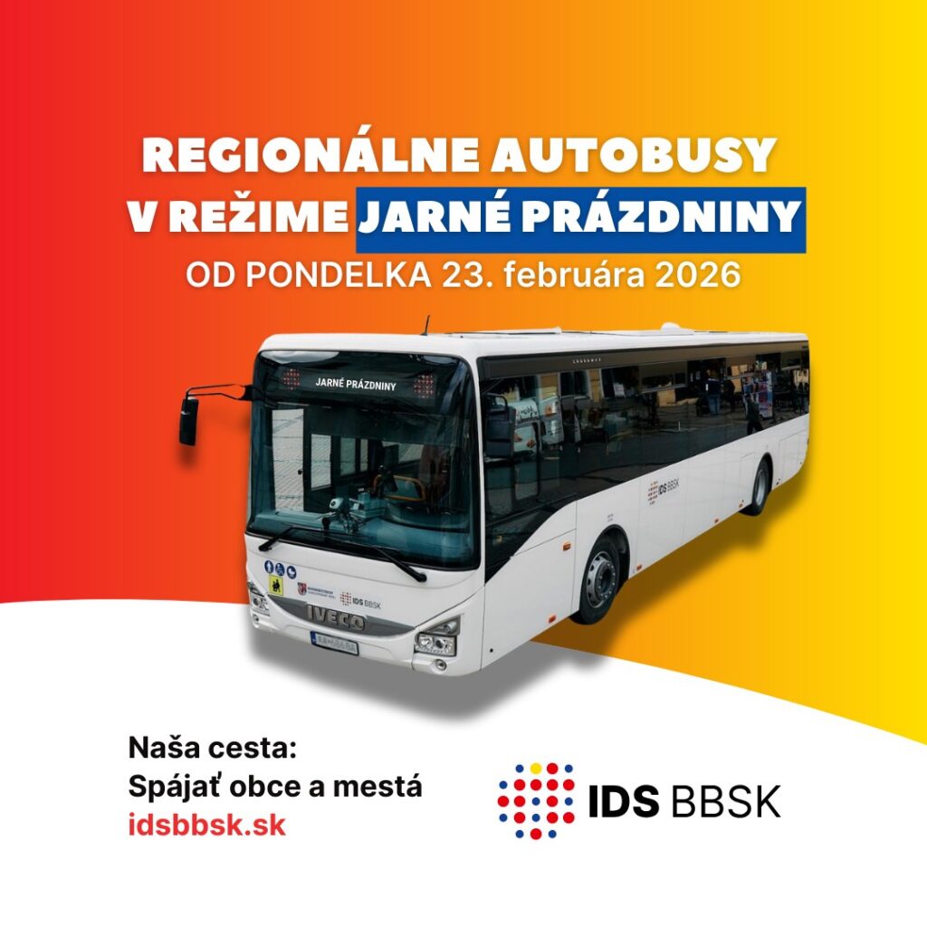 Už o týždeň, v pondelok 23. februára 2026, sa pre žiakov v Banskobystrickom kraji začínajú vytúžené jarné prázdniny. S ich príchodom však prichádza aj významná zmena v regionálnej autobusovej doprave, ktorá potrvá až do piatka 27. februára.