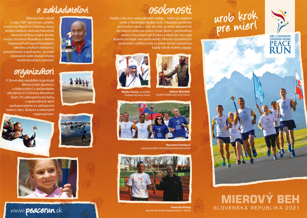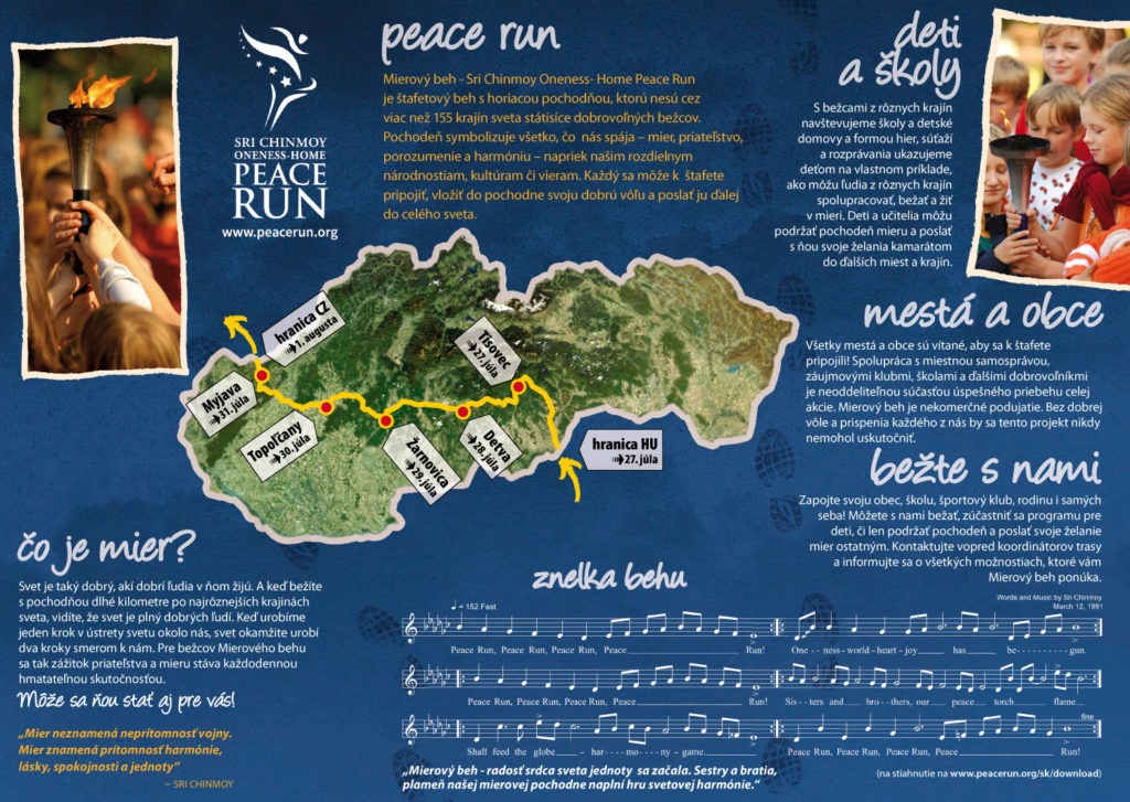 Športovci bežia za mier a harmóniu medzi ľuďmi. “Stretávame sa s ľuďmi a oni si väčšinou zaželajú niečo dobré pre ľudí. Máme aj taký grant pre deti, kde sa snažíme do toho zapájať aj deti. Chceme ich naučiť, že mier sa začína u nás a je potrebné šíriť dobro a mier do sveta. Robíme to takou hravou a zábavnou formou,” doplnila s tým, že oslovujú aj samosprávy miest a obcí, kadiaľ bežia.