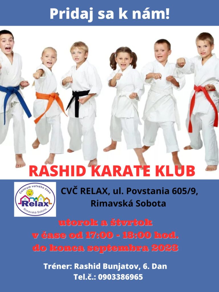 Ako avizuje vedúci Karate Klubu Revúca a už aj Karate Klubu Rimavaská Sobota a tréner Rashid Bunjatov (6. Dan), v klube si miesto dokáže nájsť každý. Nábor členov sa začína už zajtra (5. septembra) od 17:00 do 18:00 v priestoroch CVČ Relax Rimavská Sobota.