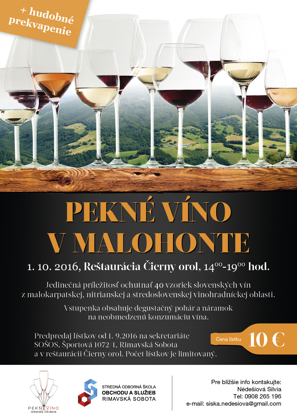 Ak ste teda milovníkmi vín, táto akcia by vám nemala ujsť! Neváhajte však dlho, počet návštevníkov je limitovaný na 170 osôb. Predpredaj vstupeniek začína od 1. septembra, lístok si môžete zakúpiť na sekretariáte Strednej odbornej školy obchodu a služieb (SOŠOS) v Rimavskej Sobote na Športovej ulici 1072/1 alebo v zariadení školy Čierny orol.