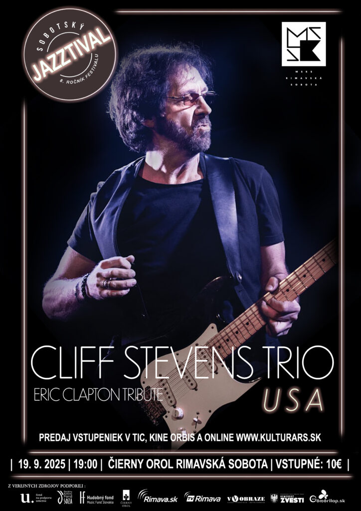 Záverečný koncert 8. ročníka SOBOTSKÉHO JAZZTIVALU 2025 bude výnimočný. V piatok, 19. septembra 2025 o 19.00 hodine vystúpi na pódiu Čierneho orla celosvetovo cenený Eric Clapton Tribute na čele so slávnym bluesovým gitaristom Cliffom Stevensom. Zážitok z koncertov tejto skupiny je takmer na nerozoznanie od originálu!