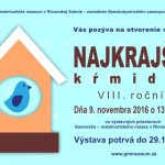 V ten istý deň (9. novembra) bude mať vernisáž aj druhá výstava, ktorá nesie názov Najkrajšie kŕmidlo. „Výstava predstaví kŕmidlá, ktoré vyrobili žiaci druhého stupňa základných škôl a zodpovedajúcich ročníkov osemročných gymnázií v rámci rovnomennej súťaže,“ podotkla Galffyová a dodala, že návštevníci si ju budú môcť pozrieť do 29. novembra 2016.