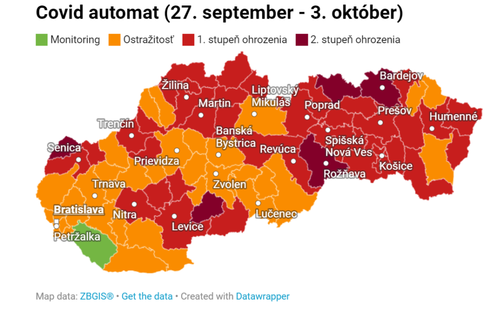 Kým tento týždeň sú v druhom stupni ohrozenia štyri okresy (Bardejov, Krupina, Rožňava a Skalica), od budúceho pondelka k nim pribudne aj Stará Ľubovňa.