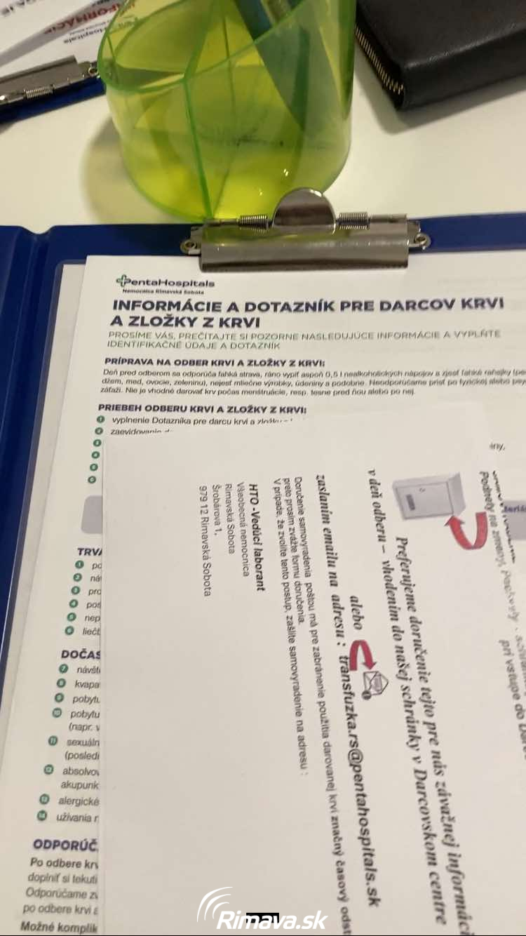 RIMAVSKÁ SOBOTA – V nemocnici v Rimavskej Sobote môžete v novom Darcovskom centre v odberové dni pravidelne darovať krv. Zdravotníci z oddelenia hematológie v uplynulý týždeň privítali niekoľko pravidelných aj nových darcov, ktorí sa rozhodli darovať túto nenahraditeľnú životnú tekutinu.