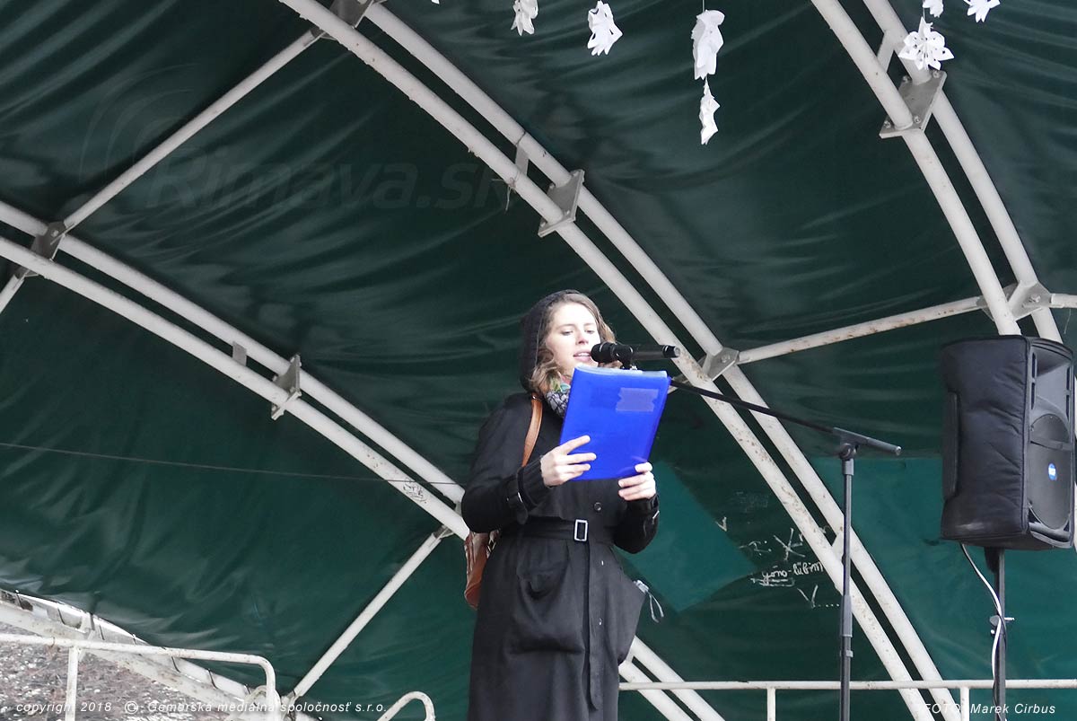 Okrem organizátorky vystúpili aj aktivisti Nežnej revolúcie v novembri 89 Henrieta Hrinková a Tibor Durdjak so svojou básňou o aktuálnej situácii v krajine. Podľa bývalej novinárky Hrinkovej smrť Jána Kuciaka a jeho priateľky prebudila k životu občianske svedomie mnohých Slovákov. „Začali sa viac pýtať, hovoriť o pochybných kšeftoch s eurofondami medzi talianskymi podnikateľmi, prepojenými na mafiu, a predstaviteľmi vládneho Smeru. Ľudia vyšli do ulíc a začali sa pýtať: Kde to žijeme? Kto nám to vlastne vládne? To naozaj môžu?,“ uviedla Hrinková.