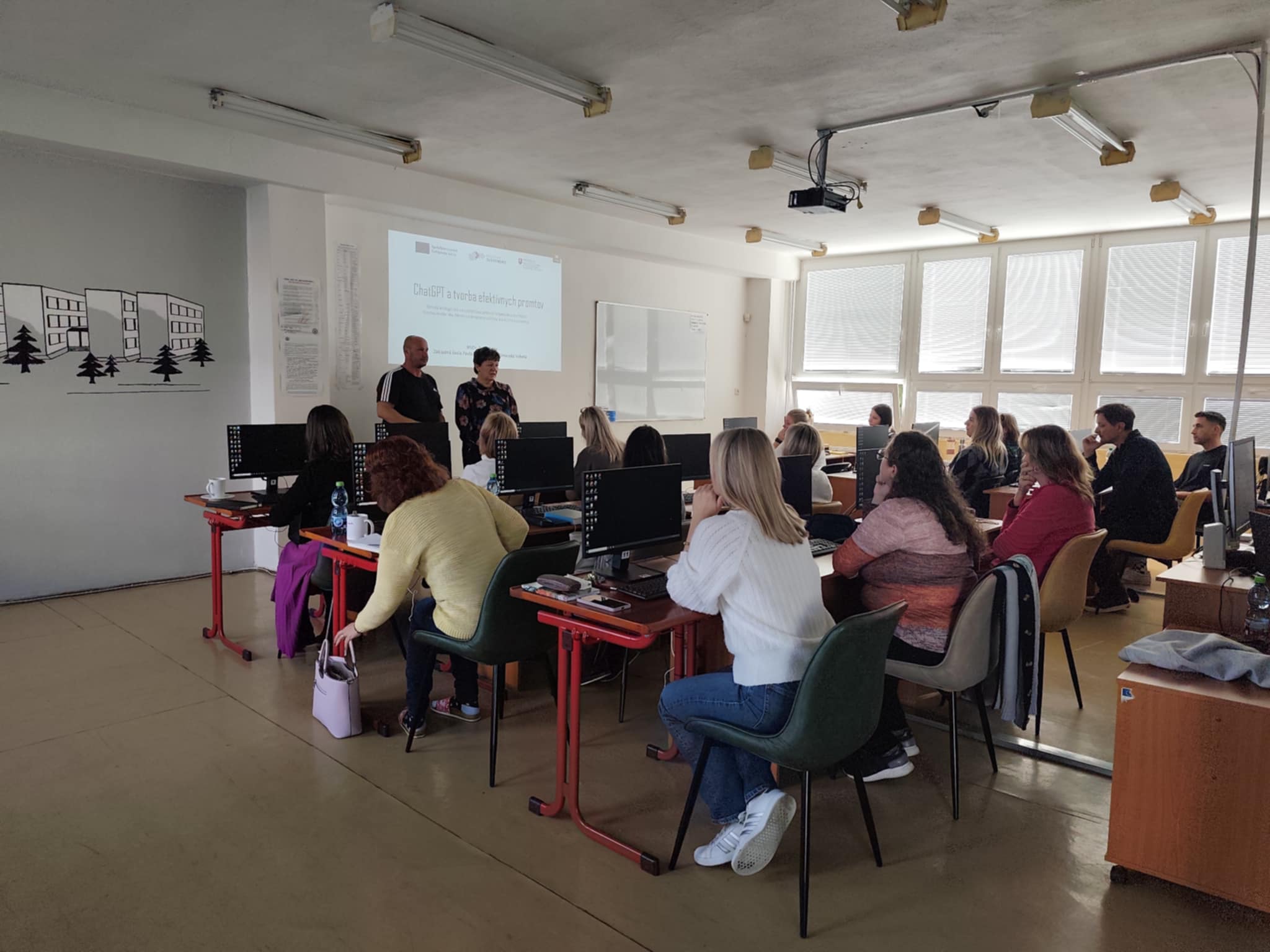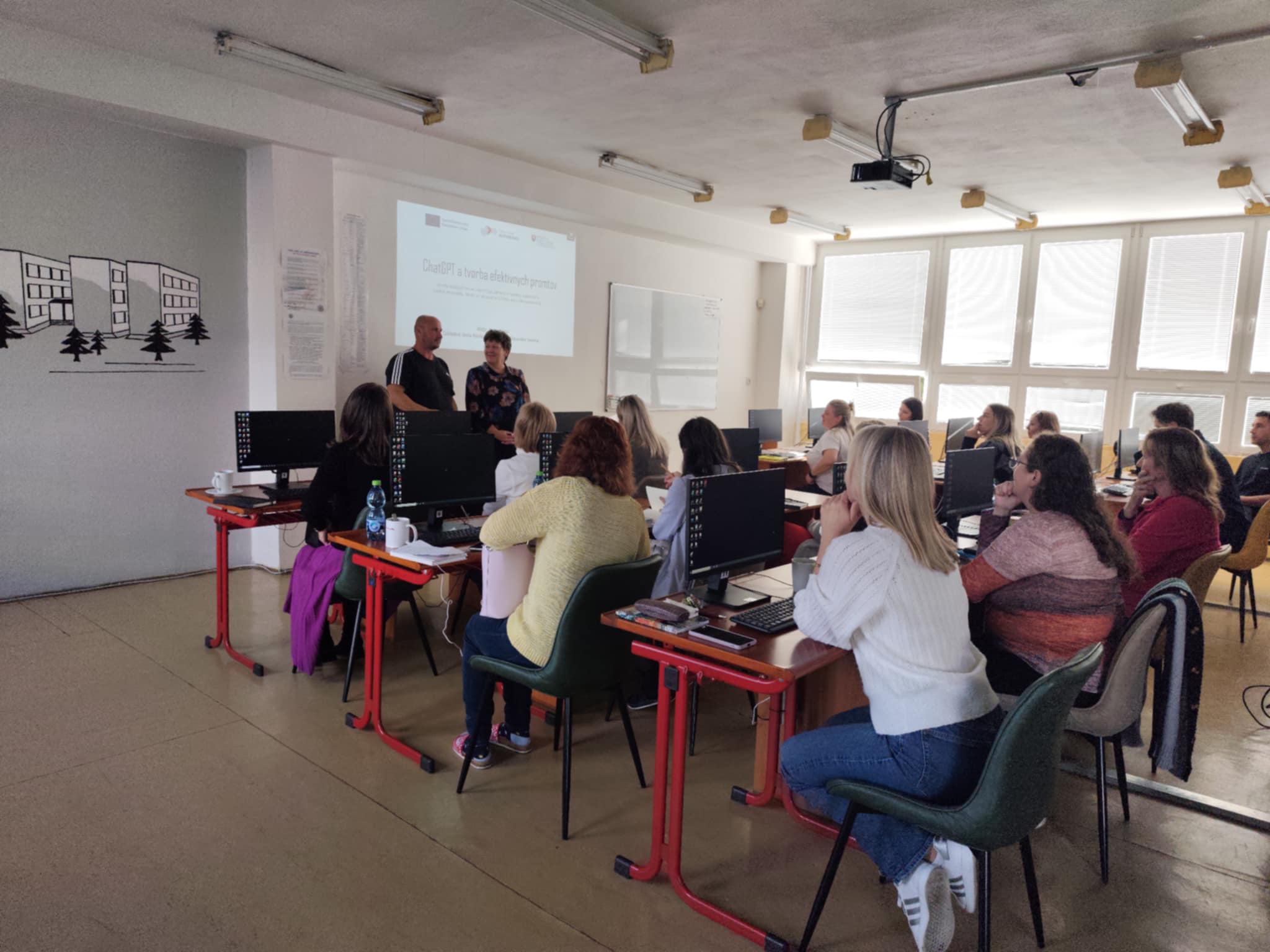 Podujatie bolo koncipované ako prednáška, workshop a praktické ukážky, ktoré viedli učiteľ informatiky Peter Nôta a školská digitálna koordinátorka Dominika Kaličiaková. Účastníci mali možnosť oboznámiť sa s konkrétnymi nástrojmi umelej inteligencie, ktoré môžu využívať pri príprave hodín, tvorbe pracovných listov, kvízov či interaktívnych materiálov.