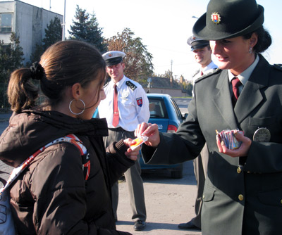 Pred jednou z najväčších rimavskosobotských základných škôl na Dobšinského ulici policajti dnes rozdávali reflexné pásky, smajlíkov a letáky. Ako pre Rimava.sk povedala Katarína Baboľová zo skupiny prevencie Okresného policajného zboru v Rimavskej Sobote, celoslovenskú dopravnú akciu vykonávajú v súvislosti s preventívnym projektom “Aby deti nezomierali-zníženie detskej úrazovosti”. Jej cieľom je poukázať deťom na riziká spojené s cestnou premávkou, aby si uvedomili, že majú chodiť cez prechody pre chodcov, aby sa nič nestalo.