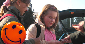 Dnes 90 tisíc detí dostane smajlíka alebo pásik z reflexného materiálu. Smajlík sa dá pripevniť na odev, alebo napríklad aj na tašku a dieťa tak zvýši svoju viditeľnosť a bezpečnosť v premávke, keďže šofér ho zaregistruje včas z väčšej vzdialenosti. Súčasne dnes rozdajú v školách aj informačné materiály pre prváčikov, z ktorých sa môžu s pomocou učiteľov či rodičov dozvedieť, ako sa správať bezpečne na ceste. Učitelia dajú smajlíkov prvákom, ktorých je asi 54 tisíc na všetkých základných školách na Slovensku. Zvyšných rozdajú policajné hliadky. "Dnes je na slovenských cestách asi 120 policajtov, z toho 80 dopravných a 40 policajtov, ktorí majú na starosti preventívne aktivity," povedal hovorca Prezídia Policajného zboru Martin Korch. Policajti rozdávali bezpečnostný materiál hneď ráno, keď sa deti vracali do škôl po jesenných prázdninách.