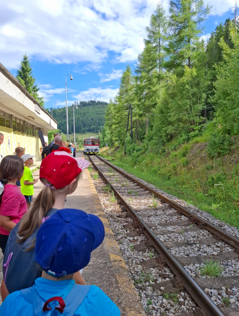 Po výdatnom obede nasledovala prechádzka na vlakovú stanicu, kde deti netrpezlivo čakali na príchod vláčika. Cesta vlakom na Červenú Skalu, počas ktorej prešli niekoľkými tunelmi, sa stala jedným z vrcholov dňa.