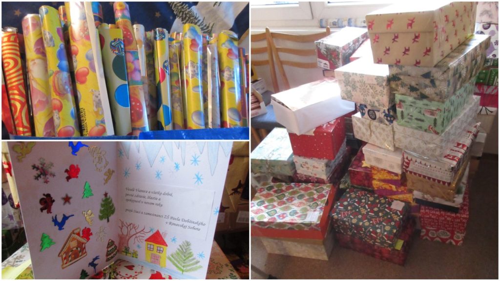 V Rimavskej Sobote sa už podarilo vyzbierať darčeky pre DD a DSS Rimavská Sobota a DD Sušany. Dobrovoľníčky sa však nezastavili a naďalej pokračujú v úsilí potešiť iných maličkosťami. „Máme tri zberné miesta. Tu, v Kvetinárstve AnaFiori a u pani Ďuricovej na odbore sociálnych vecí,“ hovorí pani Daniela Köbölová popritom ako balí do škatúľ rôzne maličkosti – čaj, drogériu či niečo sladké.