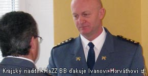 Koncom roka 2011 odchádzajú do výsluhového dôchodku dvaja príslušníci Okresného riaditeľstva Hasičského a záchranného zboru v Rimavskej Sobote, Ivan Horváth st. a Ivan Vojtko. Včera (22. decembra) sa im za ich prácu prišiel poďakovať krajský riaditeľ HaZZ Dušan Sľúka. "Určite by tu bolo nespočetné množstvo ľudí, ktorí by sa vám prišli poďakovať a vyjadrili by vám vďaku za to, ako ste svoje poslanie vnímali a ako ste ho brali a pomáhali ľudom, ktorí sa ocitli v núdzi," povedal Sľúka v príhovore a vyzdvihol prácu hasičov, záchranu ľudského života aj majetku.