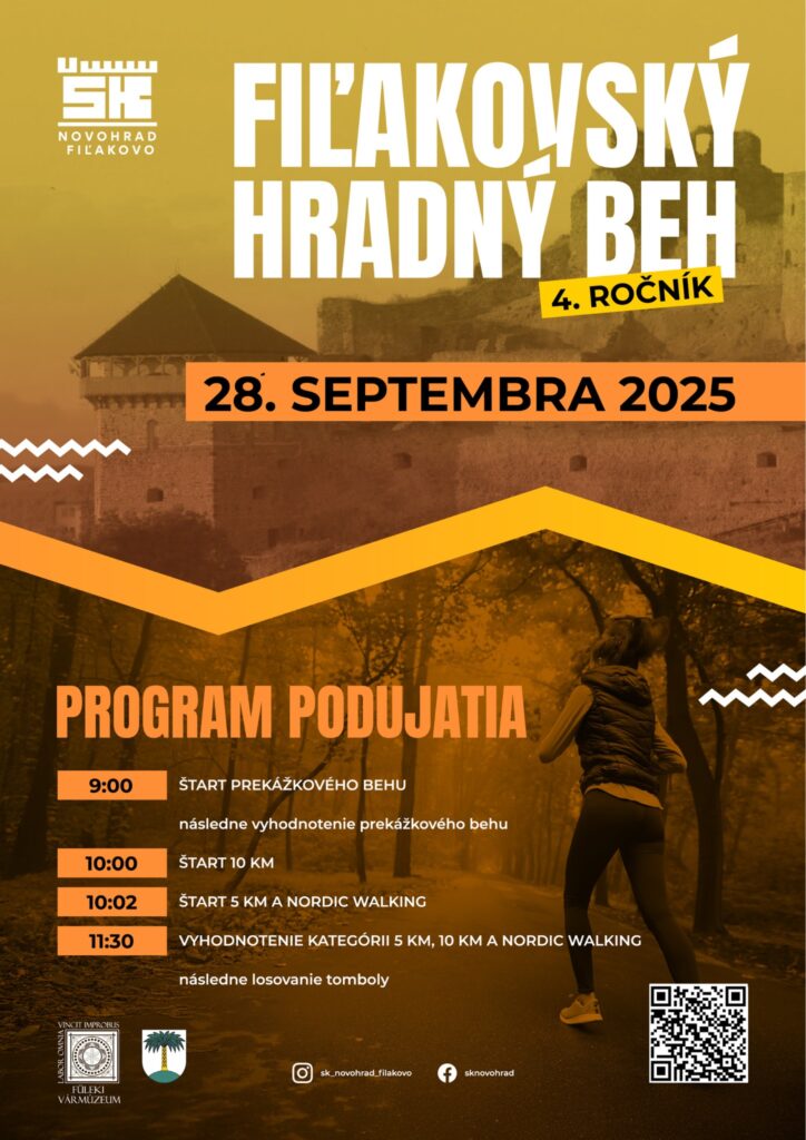 Bežecké preteky priamo pod Fiľakovským hradom si za posledné roky získali čoraz väčšiu obľubu a stali sa pevnou súčasťou miestneho športového kalendára. V nedeľu 28. septembra 2025 sa uskutoční 4. ročník Fiľakovského hradného behu, ktorý opäť prinesie dopoludnie plné pohybu, dobrej nálady a priateľskej atmosféry. Organizátormi podujatia sú Športový klub Novohrad v spolupráci s mestom Fiľakovo a Hradným múzeom vo Fiľakove.