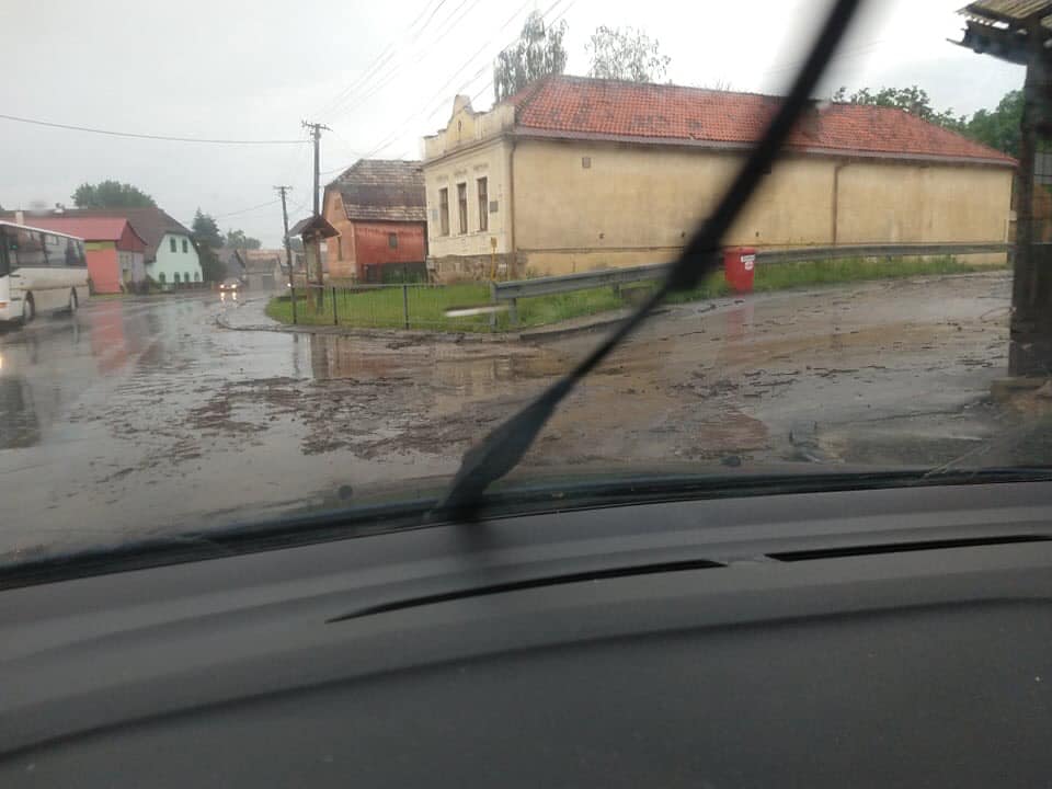 Záleží potom aj od toho, kde zaprší, a na ktorú stranu kopca sa voda valí. Viac vody popri cestách stálo aj medzi Hrachovom a Kocihou, kde sa dokonca poškodil svah vedľa cesty.