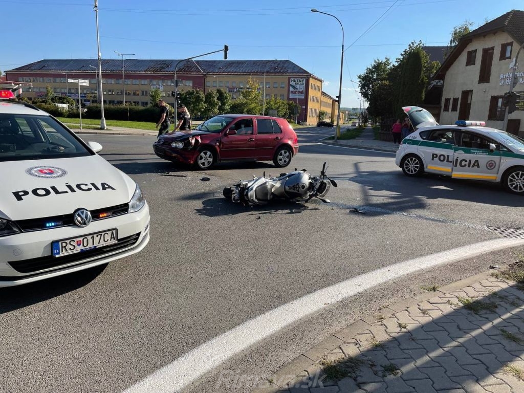 RIMAVSKÁ SOBOTA – Niekoľko minút po 16.00 hod. sa v Rimavskej Sobote na svetelnej križovatke zrazilo osobné auto s motorkárom. Na mieste sa nachádza polícia aj hasiči.