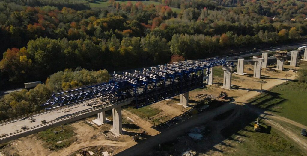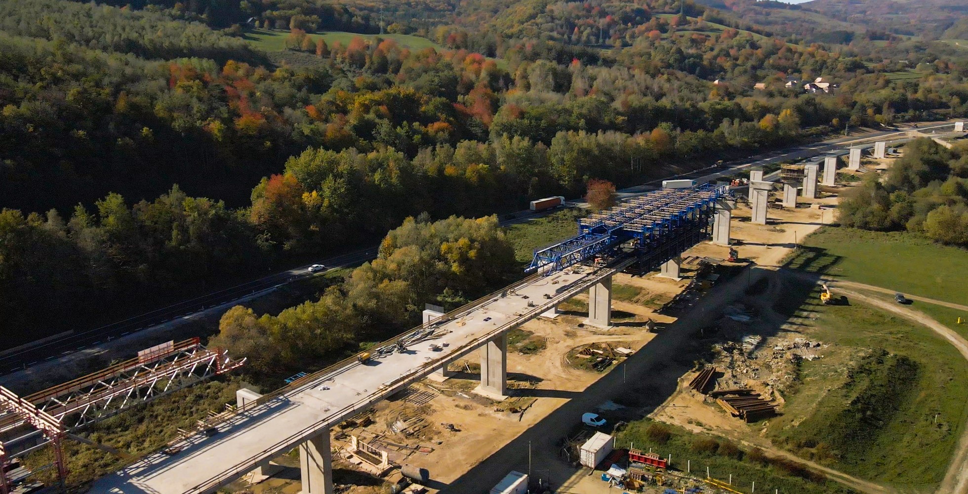 Pokračovala, že most budujú metódou horných výsuvných skruží, pričom oba mosty majú samostatnú skruž. "Na jeden pracovný cyklus zabetónujeme medziľahlé pole a konzolovanú časť nasledujúceho poľa. Obe skruže sa pohybujú po oceľových konštrukciách umiestnených na vopred vybudovaných priečnikoch. Most posúvajú hydraulické valce umiestnené na týchto konštrukciách."
