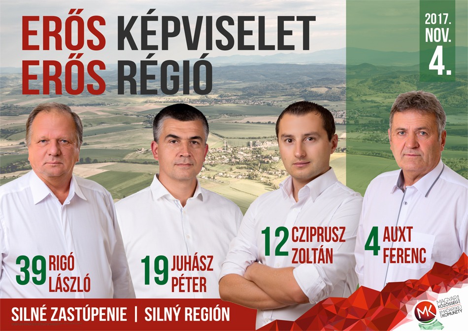 Kérünk minden felelős rimaszombati járásbeli polgárt, ne hagyja elvenni a jövőjét, ne maradjon otthon 2017. november 4-én, menjen el szavazni és karikázza a Magyar Közösség Pártjának négy képviselőjelöltjét.