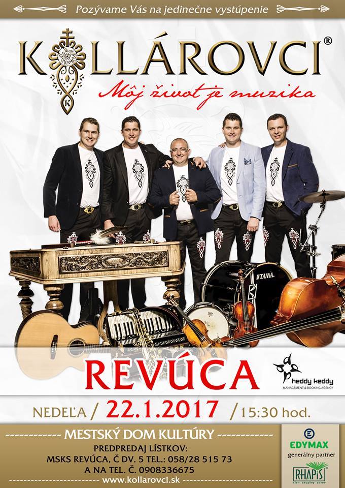 Živú hudbu, temperamentný spev a humorné slovo prinesie do Revúcej 22. januára hudobná skupina Kollárovci. „Nosným pilierom ich repertoáru je slovenská ľudová pieseň, ktorá vďaka ich podaniu dostáva nový šat,“ dodala Vargová.
