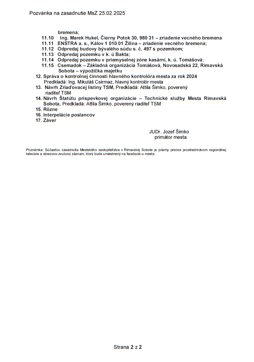 Materiály na rokovanie sú dostupné na webovej stránke mesta v sekcii Mestské zastupiteľstvo. Vedenie mesta pozýva občanov, aby sa zasadnutia zúčastnili a aktívne sa zapojili do diskusie o dôležitých témach týkajúcich sa rozvoja Rimavskej Soboty.