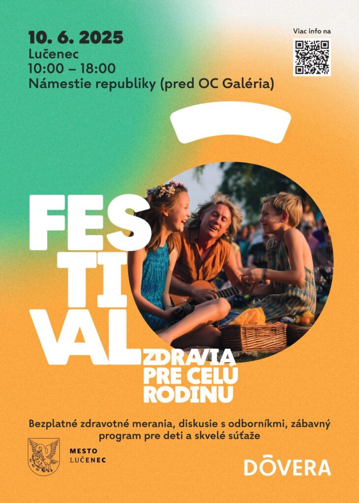 Festival je určený pre všetky vekové kategórie – od detí až po seniorov. Návštevníci budú môcť absolvovať merania krvného tlaku, hladiny cukru v krvi a cholesterolu, získať cenné informácie o prevencii civilizačných ochorení, ale aj sa porozprávať s odborníkmi o možnostiach zlepšenia životosprávy a psychickej pohody.