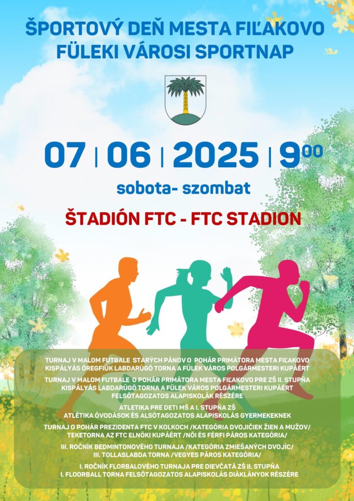 Mesto Fiľakovo pozýva všetkých priaznivcov športu na športový deň, ktorý sa uskutoční v sobotu 7. júna na štadióne FTC. Podujatie sa začne o 9:00 hodine a vstup je voľný.