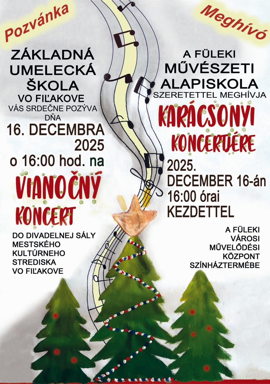 Vianočný program vo Fiľakove vyvrcholí v utorok 16. decembra 2025 o 16:00 hodine vianočným koncertom Základnej umeleckej školy, ktorý sa uskutoční v divadelnej sále Mestského kultúrneho strediska.