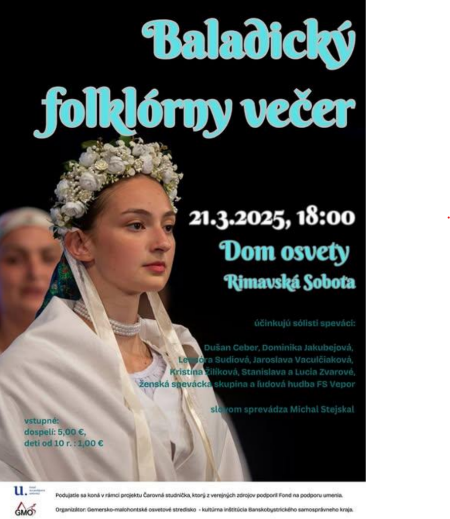 Dom osvety v Rimavskej Sobote pripravuje pre všetkých nadšencov tradičnej hudby a spevu jedinečný Baladický folklórny večer, ktorý sa uskutoční v piatok 21. marca 2025 o 18:00.
