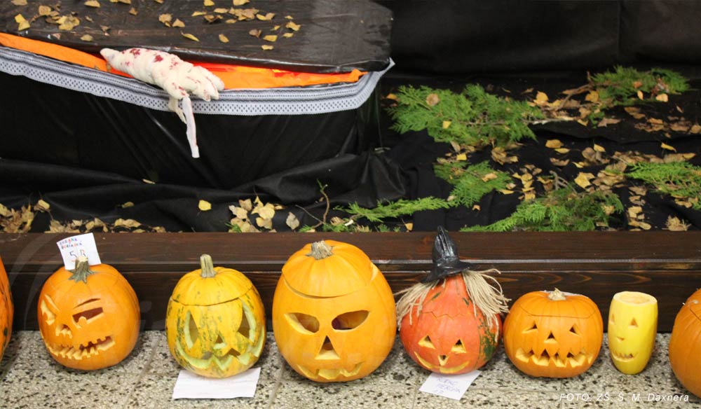 Výstavu vyrezávaných tekvíc mali aj na ZŠ Š. M. Daxnera. Podľa riaditeľa školy Petra Černého deti tento rok priniesli až 117 tekvíc, ktoré boli súčasťou veľkej výzdoby. „Takýto počet tekvíc sme ešte na škole nemali,“ uviedol pre Rimava.sk Černý, podľa ktorého vyberali najkrajšie tekvice a neskôr deti tancovali v maskách a plnili rôzne disciplíny.