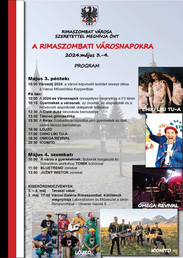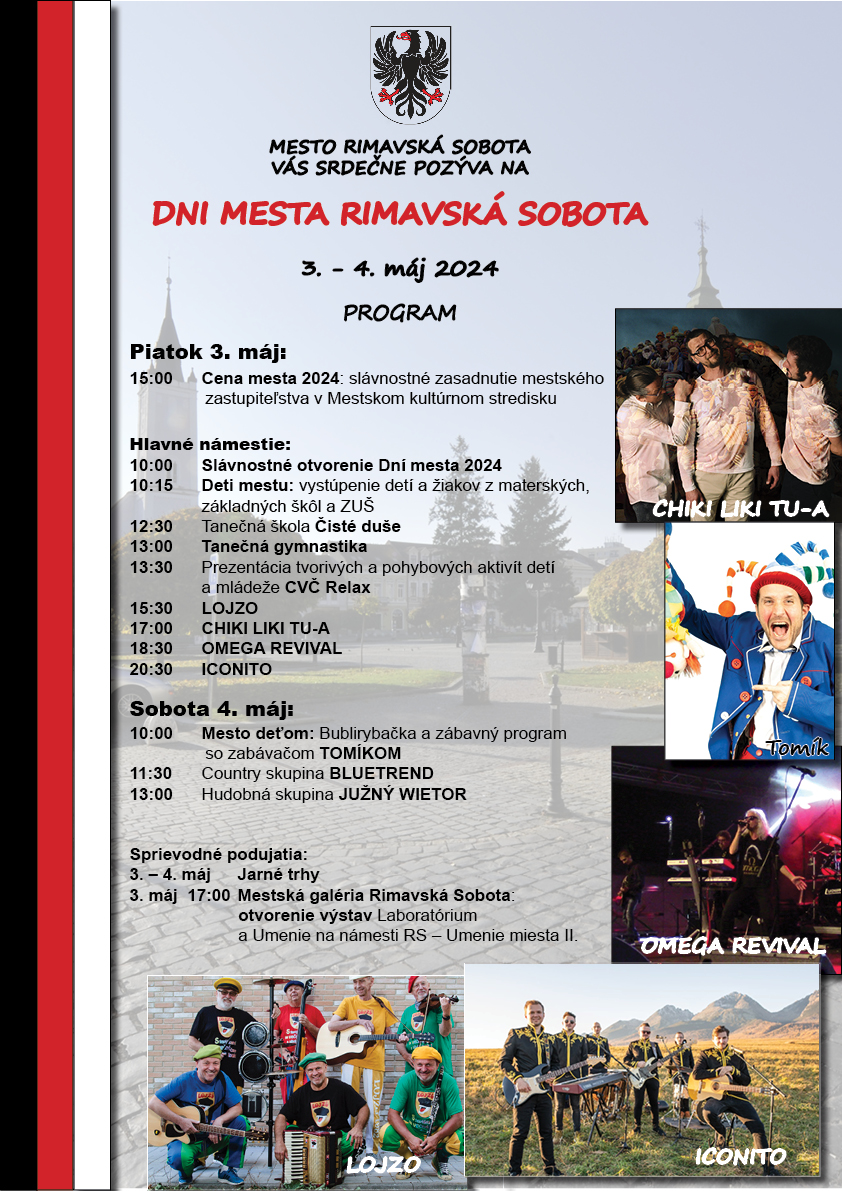 Dni mesta pokračujú pestrým programom a jarnými trhmi až do zajtra (4. mája). Kompletný program Dní mesta Rimavská Sobota nájdete na TOMTO LINKU.