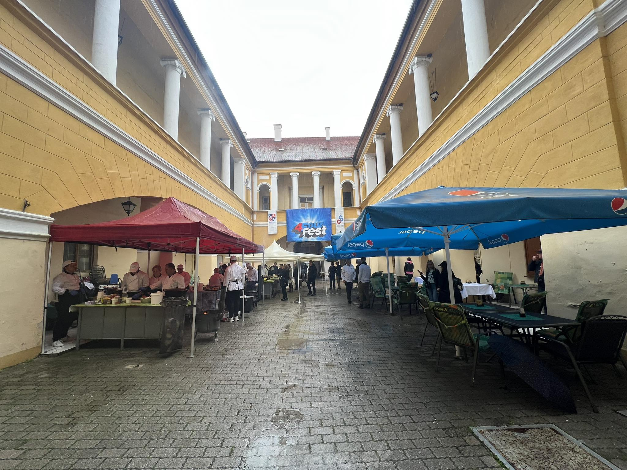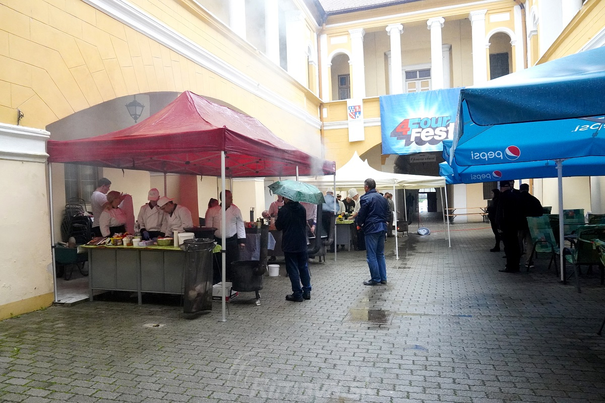 RIMAVSKÁ SOBOTA – Ani nepriaznivé počasie nepokazilo súťažným tímom náladu. Družstvo z Českej republiky roztancovalo a rozospievalo celé nádvorie Čierneho orla. Festival FourFest dnes (17. mája) odštartoval tohtoročné súťaženie medzi strednými školami krajín V4.