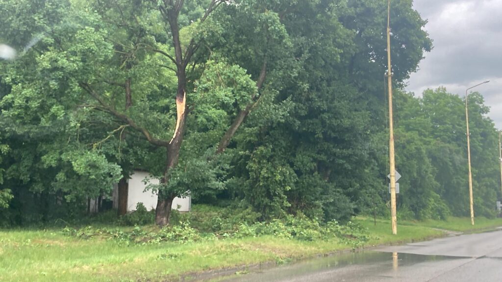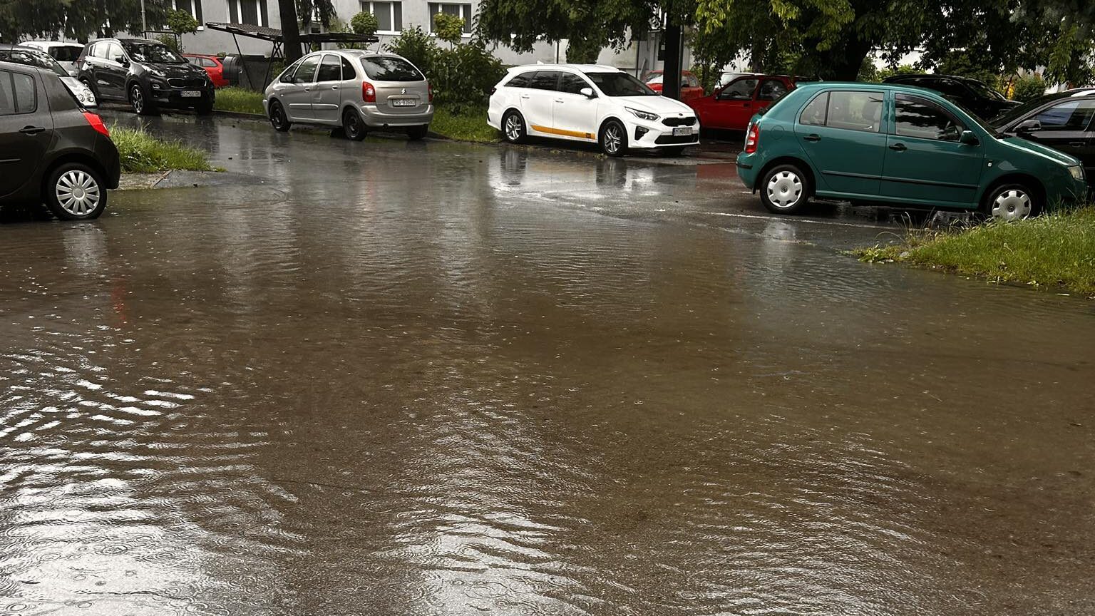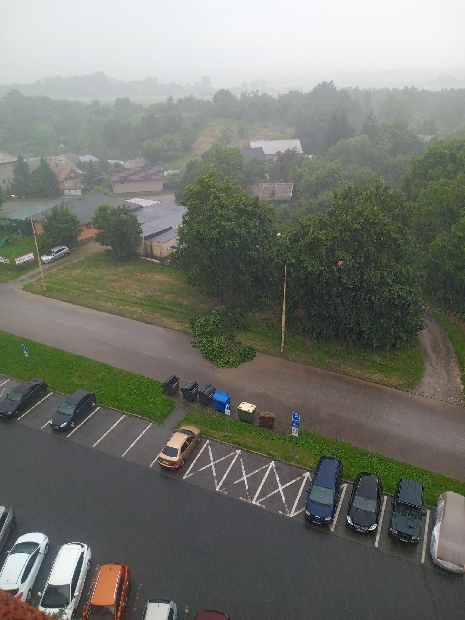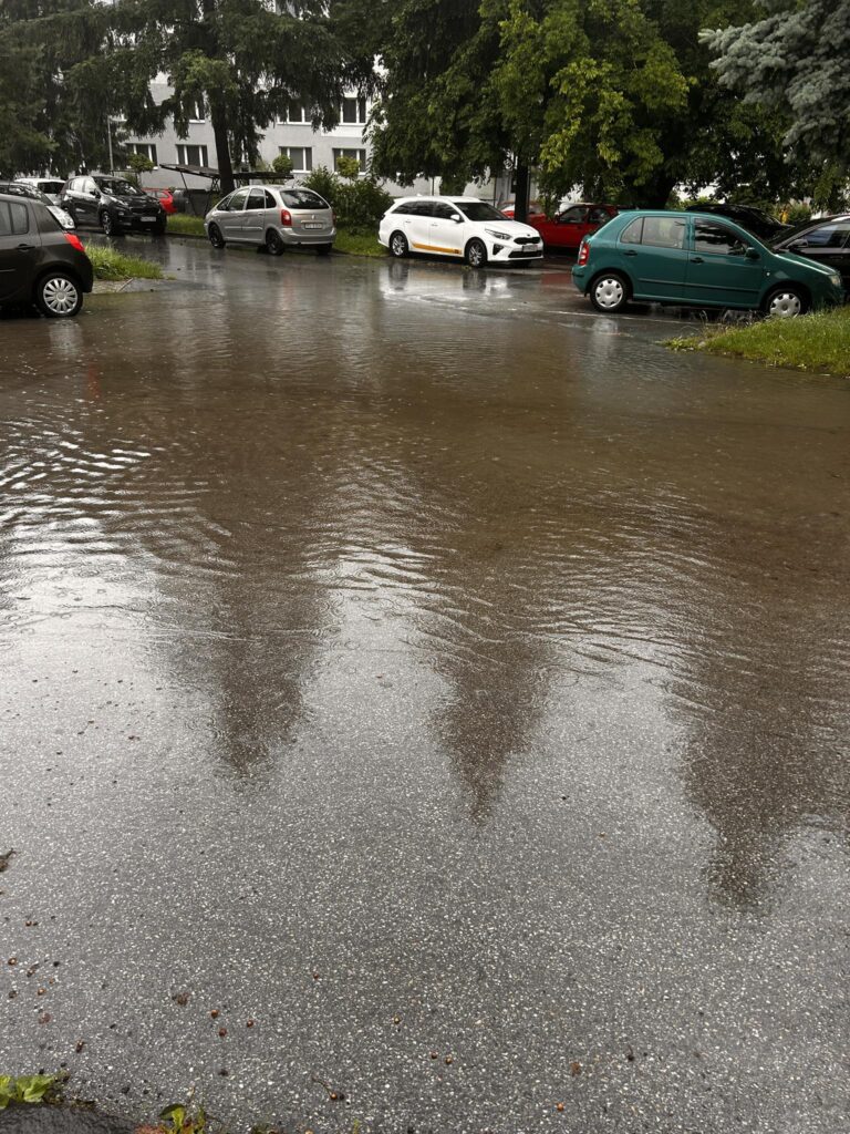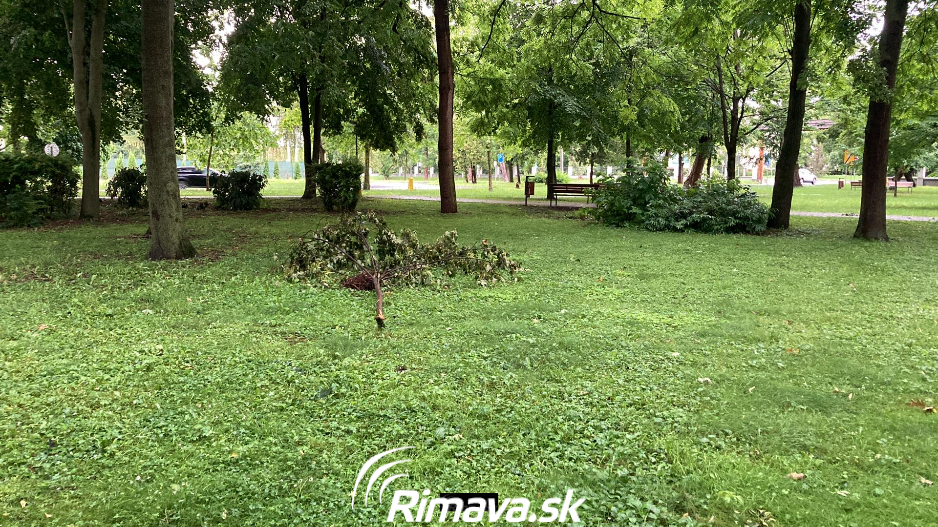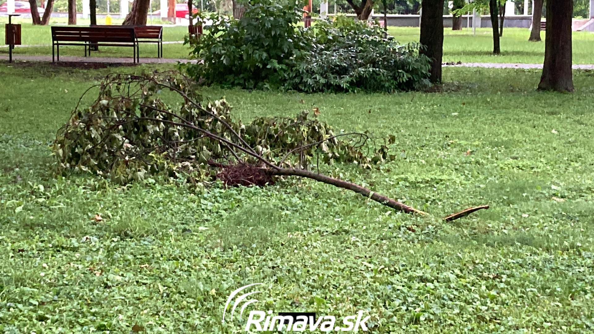 Prívalové zrážky pretrhli mestský rozhlas. Spadnutý strom na sídlisku Západ pri pizzérii Haly Galy už odstránili. Vytopené sú tiež viaceré parkoviská, v mestskom parku búrka polámala pár konárov a spôsobila bahnitú pôdu a stojatú vodu pod detskými ihriskami.