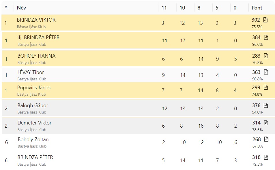 Po ukončení súťaže boli výsledky spracované a každý súťažiaci obdržal svoje skóre. Medzi najlepšími sa na prvých miestach umiestnili Viktor Brindza, Peter Brindza ml., Hanna Boholy, János Popovič a Tibor Lévay.