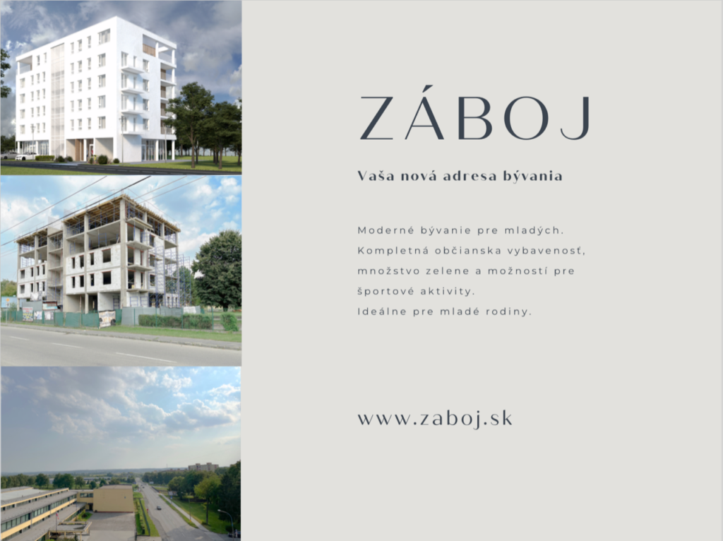 Pokiaľ vás zaujala ponuka bývania v apartmánovom dome Záboj, bližšie informácie nájdete na stránke www.záboj.sk, alebo na telefónnom čísle 0918 114 015, kde vám poskytnú informácie aj o možnom financovaní.