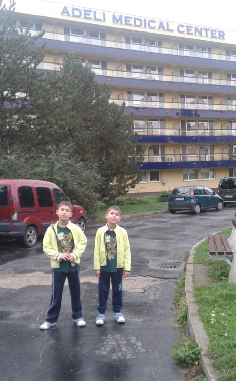 „S chlapcami sme tento liečebný pobyt absolvovali v druhej polovici septembra,“ začala rozprávať mama Alexandra a pokračuje: „Bol s nami aj manžel, ja som chodila na procedúry s jedným a manžel s druhým chlapcom,“ priblížila Alexandra. Podľa jej slov mali na jednotlivé procedúry presne stanovený čas a od rána od 7.40 hod. do 14.00 hod. vystriedali kryokontrastnú terapiu, dvojhodinové rehabilitačné cvičenia a hodinové masáže, pokračujúc kyslíkovou, magnetovou, manuálnou terapiou a končiac logopédiou.