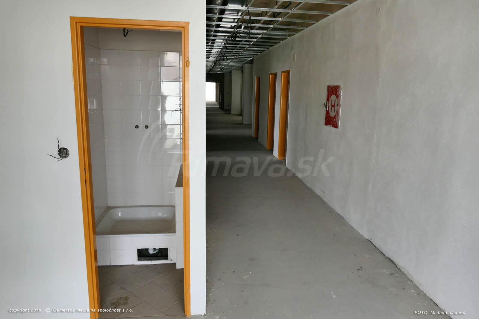 Najnovšie budovy v nemocnici začali stavať pred približne tridsiatimi rokmi, v jednej z nich sídli detské, pôrodnica a gynekológia, druhý pavilón mal slúžiť ako chirurgia. Budovy sú pritom z vonku takmer identické, vnútorné rozmiestnenie priestorov je však iné. Do budovy sa malo doposiaľ preinvestovať už vyše 12,141 milióna eur, na dokončenie sa v roku 2009 odhadovalo ešte približne 1,93 milióna eur. Jedno podlažie má podľa Mokrého približne 1600 metrov štvorcových, pritom podľa zámerov a projektovej dokumentácie ešte z roku 1999 len röntgen mal byť na jednom podlaží. Na ďalšom malo byť Oddelenie hematológie a transfuziológie, Fyziatricko-rehabilitačné oddelenie s bazénom a saunou. Podľa riaditeľa s prevádzkovaním toho bazénu neplánujú. Okrem operačných sál na najvyšších podlažiach mala budova ponúknuť aj priestory pre približne 50 lôžok na traumatológii a chirurgii. Ako ďalej pri exkluzívnej prezentácii priestorov uviedol, sa možno zdá, že niektoré podlažia sú v pomerne vysokom štádiu dokončenia, no v tejto dobe si pri terajšom rozmiestnení priečok nevedia predstaviť modernú nemocnicu, logistiku a komfort pre pacientov. Podľa jeho slov preto budú musieť najprv odstrániť približne 90 percent priečok, úzkych dverí, ktorými je problém prejsť ako aj prerozdeliť lôžka, problémom sú aj rozpadávajúce sa plastové okná či vlhkosť múrov. „Na dve lôžka je izba veľká, na tri malá. Navyše by bol veľký problém s prenášaním postelí,“ podotkol riaditeľ.
