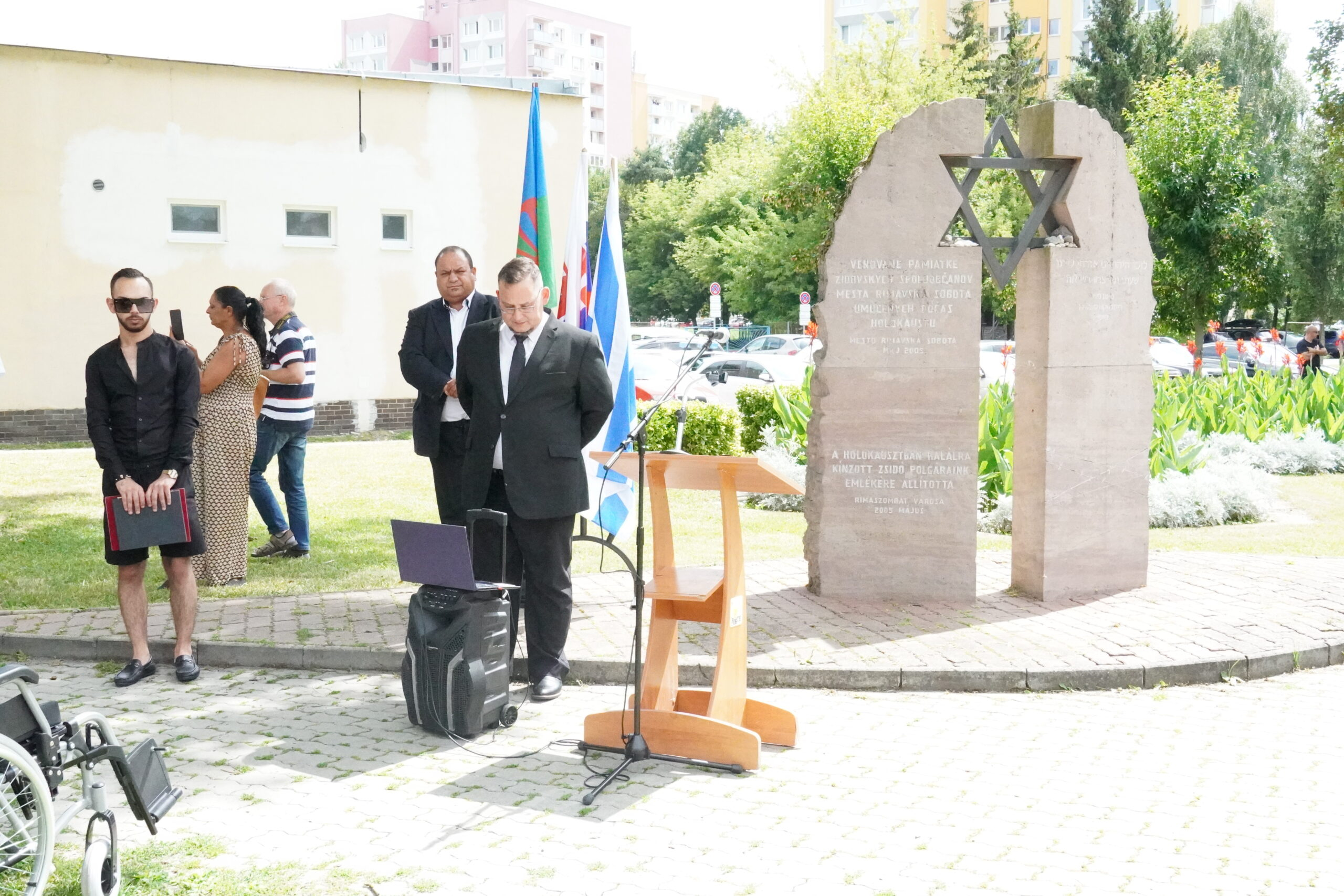 Prítomných hostí privítal Csaba Horváth, výkonný riaditeľ občianskeho združenia Opre Roma. "Dnes sme sa tu zišli pri príležitosti 79. výročia pamätného dňa rómskeho holokaustu. Dámy a páni, spomínajme dnes spoločne a nikdy nezabúdajme," povedal prítomným.
