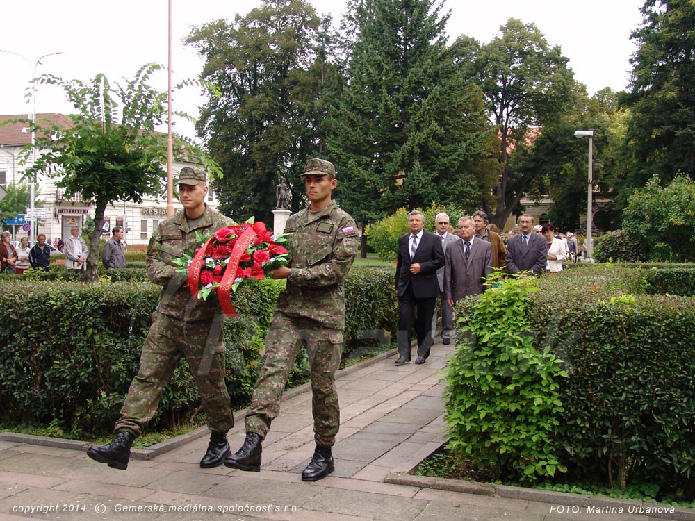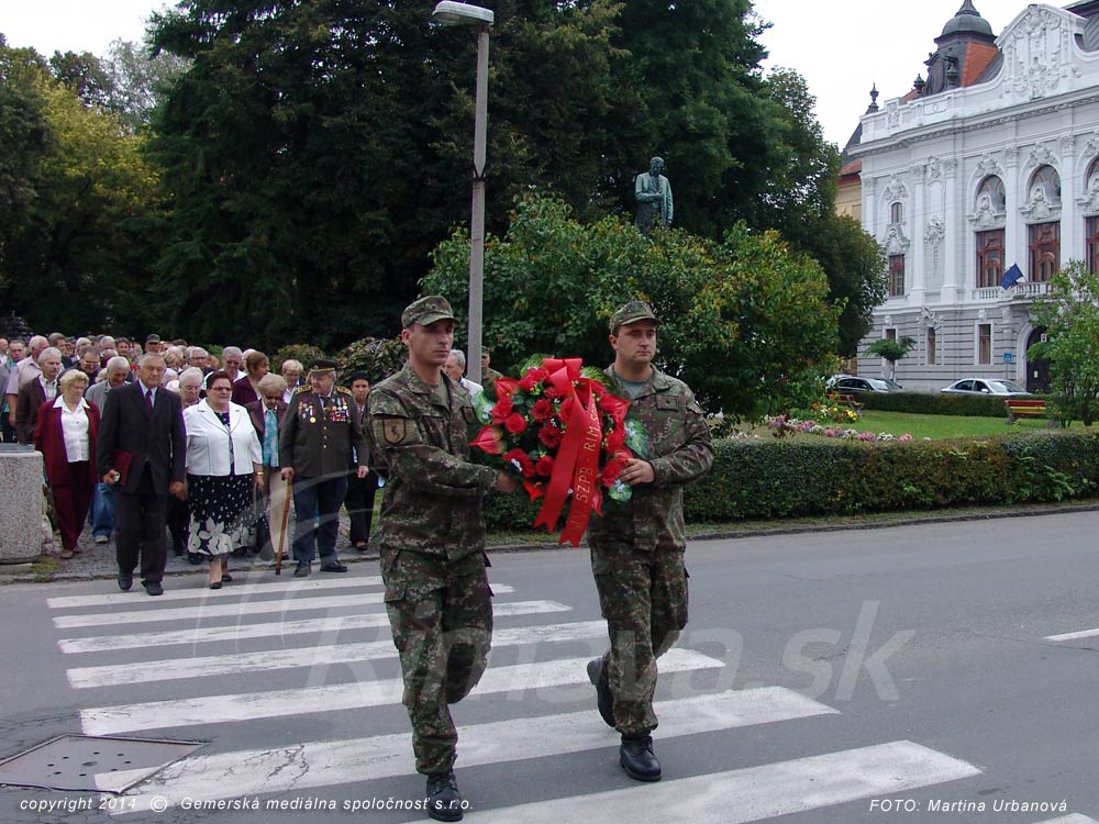 pietny akt Rimavská SobotaK pamätníku Červenej armády na Námestí M. Tompu v Rimavskej Sobote položili vence, účastníci  spomienkového stretnutia si dnes pripomenuli 70. výročie Slovenského národného povstania. Ako vo svojom príhovore uviedol Pavel Brndiar, predseda oblastného výboru Slovenského zväzu protifašistických bojovníkov, SNP je jedna z najvýznamnejších udalostí v slovenských dejinách, ktorou sme sa prihlásili k myšlienkam demokracie a slobody. Podľa jeho slov sa síce vraví, že do minulosti sa netreba vracať, ako však povedal, významné historické medzníky si treba pripomínať, pre lepšie pochopenie súčasnosti a ovplyvnenie budúcnosti. Pietneho aktu sa zúčastnili desiatky ľudí, medzi nimi primátori a starostovia, príslušníci ozbrojených zložiek, polície, zástupcovia a zamestnanci úradov a inštitúcií pôsobiacich v meste.