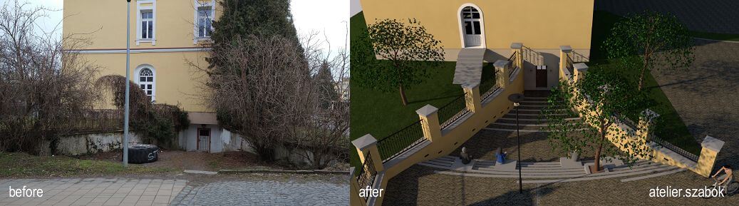 V prvej etape mesto postaví medzi budovou gymnázia a B budovou repliku historickej brány, ktorá pôvodne stála pred gymnáziom. Práce budú zahŕňať aj terénne úpravy, kompletne sa zrekonštruuje aj bočný vstup do gymnázia.