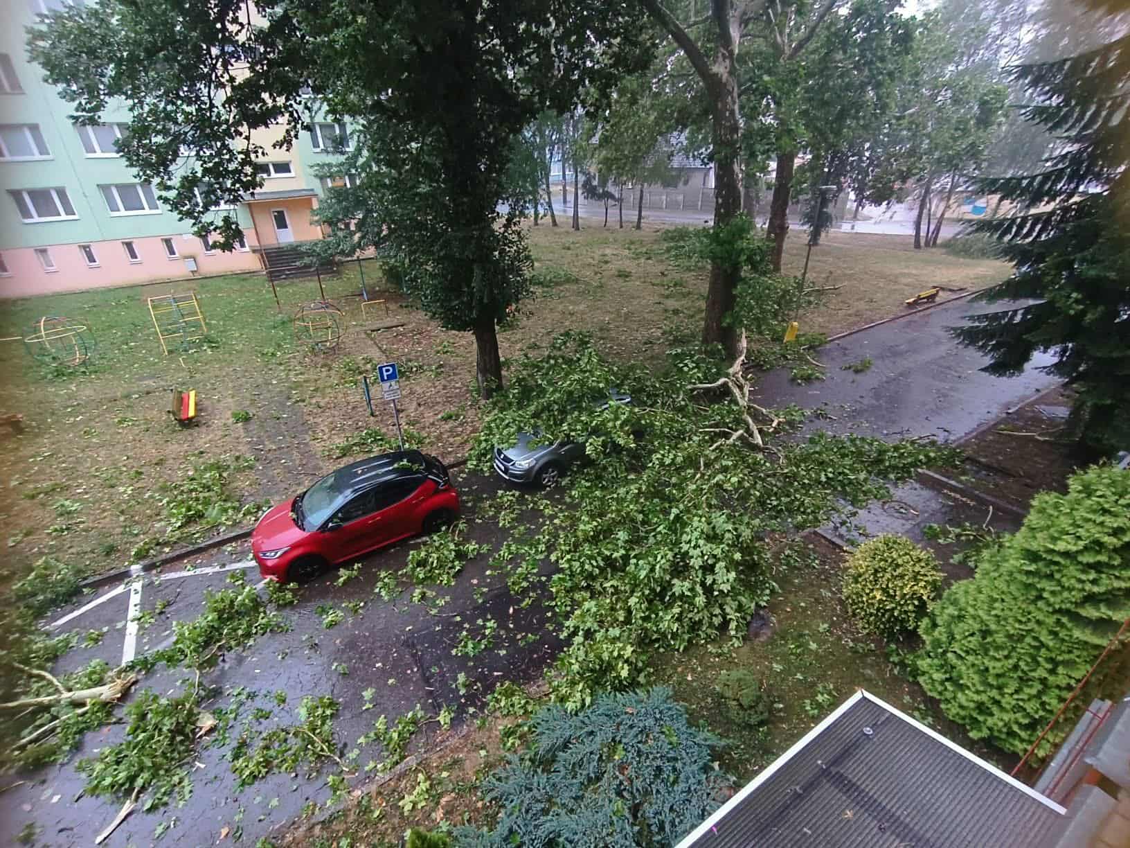Silný vietor a prívalové zrážky napáchali škody na viacerých miestach. Čitatelia nám poslali fotografie popadaných stromov, polámaných konárov a prevrátených smetných kontajnerov. Niektoré komunikácie boli dočasne neprejazdné, konáre a stromy padali aj na autá.